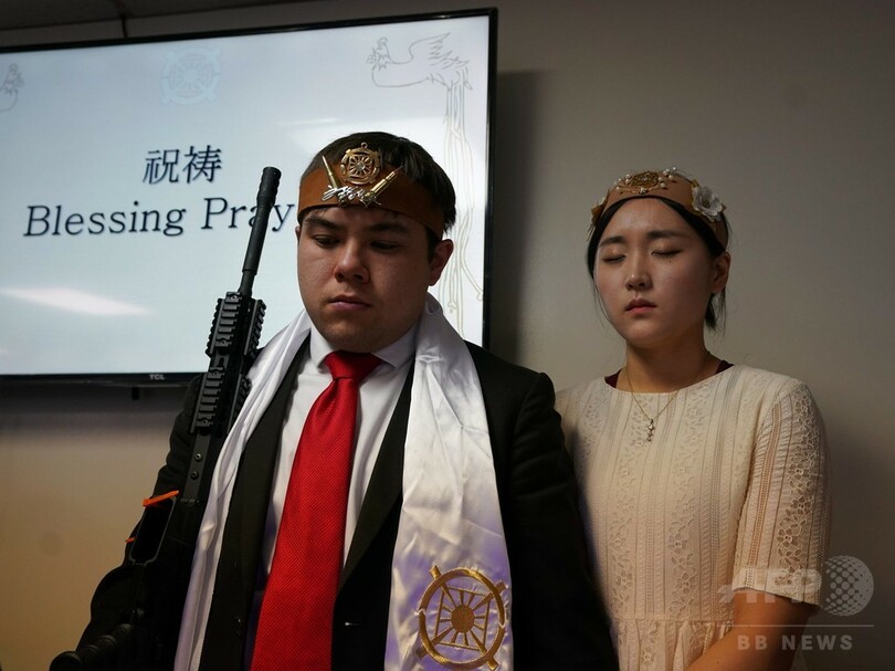 銃を手に誓う愛、米の「合同結婚式」で小学校が休校 指導者が武器礼賛