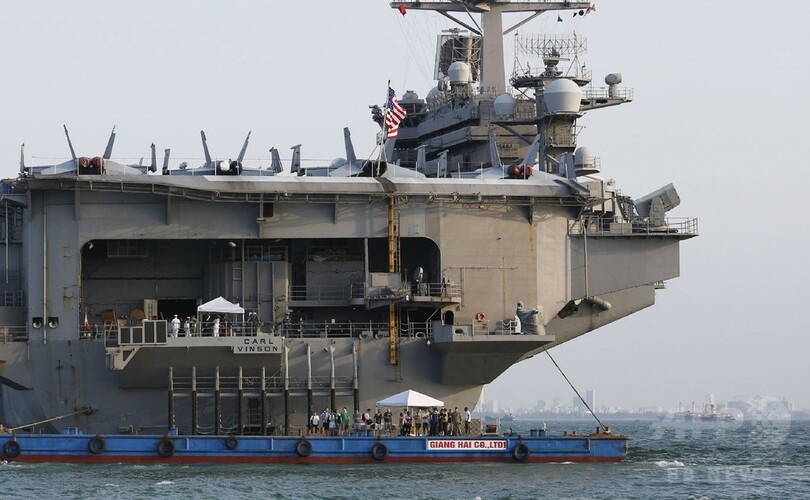 【3月5日 AFP】(写真追加)米軍の原子力空母カール・ビンソン(USS Carl Vinson)が5日、ベトナム中部ダナン(Danang)に入港した。米空母のベトナム寄港は、1975年にベトナム戦争が終結して以来初めて。かつての敵国同士は、南シナ海(South China Sea)で中国が勢力を拡大する中、軍事面での関係を強化している。