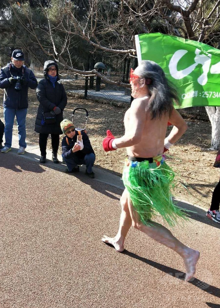 【3月7日 CNS】中国・北京市(Beijing)にあるオリンピック森林公園(Olympic Forest Park)で2月25日、「光猪跑(訳:裸で走る、Undie Run)大会」が開催された。