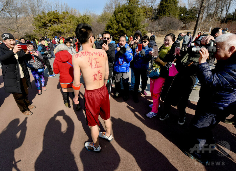 大会名は「裸で〜」だが、参加者は必ず下着を着用しなければならないのがルール。2010年頃から中国全土に広まり、「おしゃれなスポーツ」として人気を集めている。(c)CNS/JCM/AFPBB News