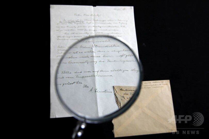 【3月7日 AFP】理論物理学者アルバート・アインシュタイン(Albert Einstein)が「相対性理論」について説明した手紙が6日、中東エルサレムで競売にかけられ、10万3700ドル(約1100万円)で落札された。