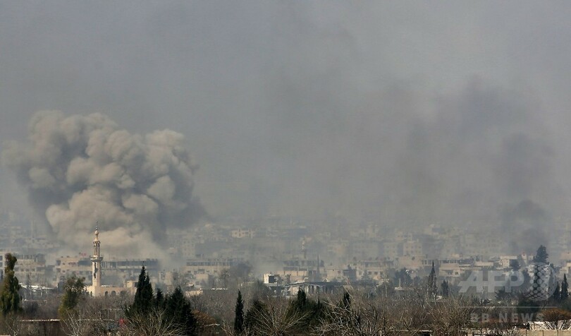 政府軍は今のところ、東グータ内の主要な町であるドゥマ(Douma)とハムリエ(Hammuriyeh)など人口集中地域には進攻していない。シリア人権監視団によると、7日には主にロシア軍が実施した激しい空爆により、少なくとも45人が死亡。先月18日以降の民間人死者数は少なくとも850人となった。(c)AFP