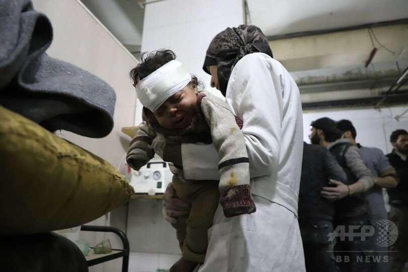 政府軍は今のところ、東グータ内の主要な町であるドゥマ(Douma)とハムリエ(Hammuriyeh)など人口集中地域には進攻していない。シリア人権監視団によると、7日には主にロシア軍が実施した激しい空爆により、少なくとも45人が死亡。先月18日以降の民間人死者数は少なくとも850人となった。(c)AFP