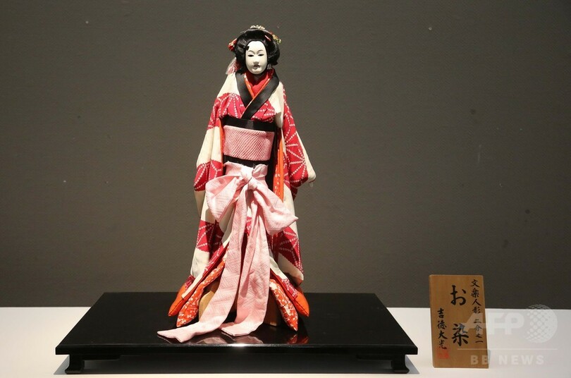 日本の風俗の中で生まれた雛(ひな)人形や五月人形、古典芸術をテーマにした能人や文楽・歌舞伎人形のほか、現代工芸家が制作した人形など、代表的な70作品を展示。来場者は、日本人形の美しさや、内に秘めるものを感じ取っていた。(c)CNS/JCM/AFPBB News