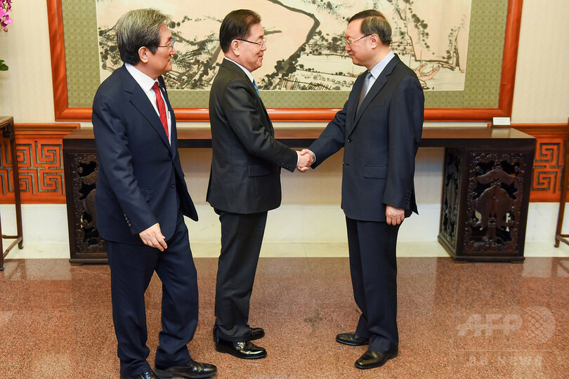 これに先立ち鄭氏は、中国外交部長の楊潔チ(Yang Jiechi)国務委員とも会談。楊氏は、「中国は引き続き、非核化の実現を目指し、朝鮮半島の平和的統一を支持し、対話と協議を通じた問題解決を図っていく」という方針を示した。(c)AFP