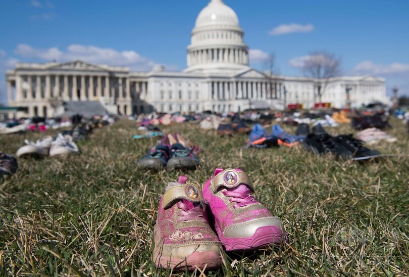 米議事堂前に靴7000足、銃関連事件で犠牲の子どもら追悼