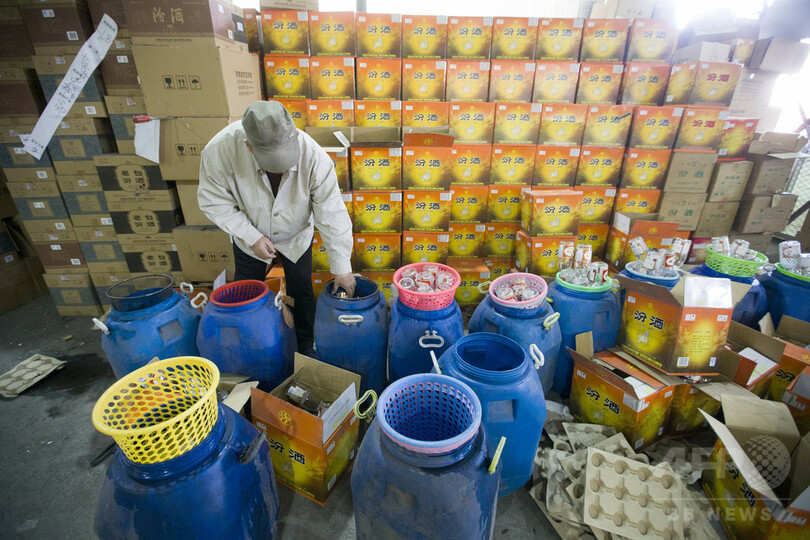 2017年の1年間で、汾酒やマオタイ酒、五粮液などの偽造酒は、合計で約2万箱、約1000万元(約1兆6858億円)相当が押収された。(c)CNS/JCM/AFPBB News
