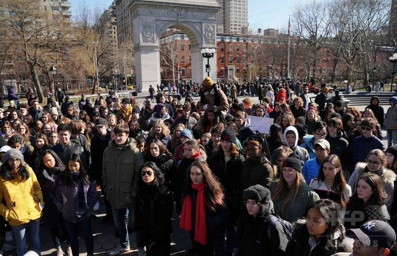 授業のボイコットは、事件の犠牲者数と同じ17分間だけの予定だったが、全米各地で合わせて数万人規模の生徒が授業に全く出席せずに抗議行動に参加した。(c)AFP/Cyril JULIEN, Chris Lefkow