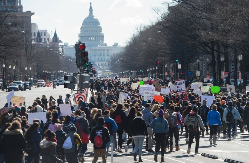 参加者数は後に数千人に増加。生徒らは連邦議会議事堂へと行進し、そこでバーニー・サンダース(Bernie Sanders)上院議員ら民主党議員と合流して、銃ロビー団体「全米ライフル協会(NRA)」を非難する声を上げた。