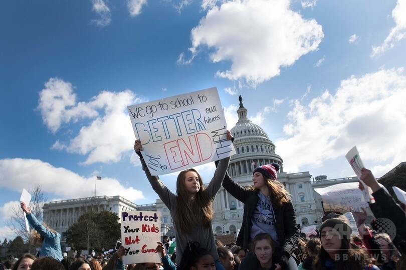 全米の高校生が授業ボイコット 乱射事件1か月で銃規制訴え