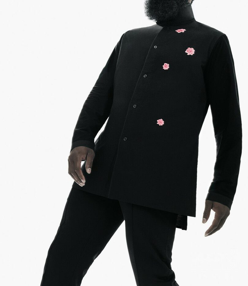 メインモチーフとなっているのは、"百花の王"とも呼ばれる「牡丹の花」。勇気、高貴、名誉、尊敬、幸運を象徴するこの花で、バスケットコート内外におけるハーデンの振る舞いを表現した。また、アイテムの上で花開く凛とした表情の牡丹は、日本の侍たちが何世紀も前から実践してきた“生け花”を彷彿とさせる。アパレルアイテムは、ブラックをベースに鮮やかな牡丹の花をあしらったボマージャケットやスウェットシャツ、クロップトパンツが揃う。フットウェアからは、1990年代の「アディダス」のシルエットにモダンな解釈を取り入れたフットウエア「Y-3 BYW BBALL」が登場。バスケットボール界を代表するハーデンがコート上で着用しているシューズをストリートスタイルに落とし込み、彼が持つパワーと自信を投影した。伸縮性のあるネオプレン製のアッパーと、ジグザグパターンのシューレースが特徴で、オリジナリティ溢れるスタイルに仕上がっている。