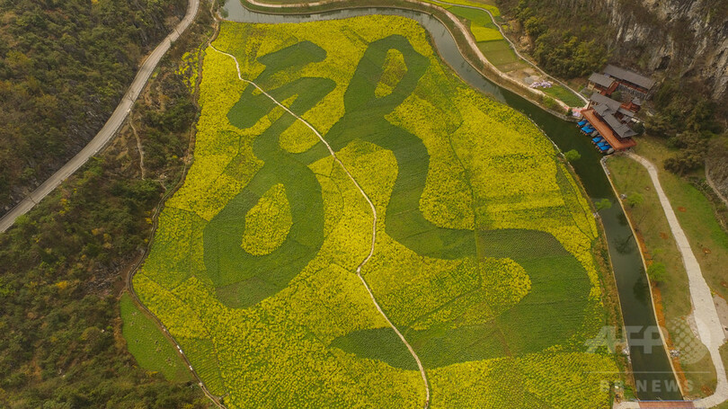 ニュース ライフ From China CNS 「春色」の龍 貴州・安順 2018年3月19日 8:08 発信地:中国 [ 中国・台湾 中国 ] このニュースをシェア ‹ › ❮ 1/4 ❯ 上空からの龍の文字(2018年3月14日撮影)。(c)CNS/瞿宏倫 画像作成中 ! 【3月19日 CNS】中国・貴州省(Guizhou)安順市(Anshun)龍宮(Longgong)漩塘(Xuantang)風景区の田園に、巨大な「龍」の字が現れ、市民や観光客が訪れている。 約8ヘクタール面積に菜の花とソラマメの花が咲き乱れ、龍の字の景観は8万平方メートルに相当する。この景観は、2017年8月に世界記録認証機構(WRCA)から「世界最大の植物に描かれた漢字の景観」として認定されている。(c)CNS/JCM/AFPBB News ニュース提供社について ライフ 一覧へ> メディア・報道関係・法人の方向け 写真・動画 購入のお問合せ>