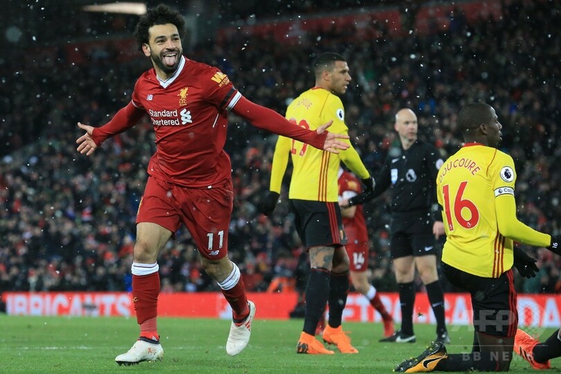 【3月18日 AFP】17-18イングランド・プレミアリーグは17日、第31節の試合が行われ、リバプール(Liverpool FC)は5-0でワトフォード(Watford FC)に大勝。ユルゲン・クロップ(Jurgen Klopp)監督は、チーム加入後初のハットトリックを達成するなど4得点の活躍をみせたモハメド・サラー(Mohamed Salah)を「ファンタスティック」と絶賛した。
