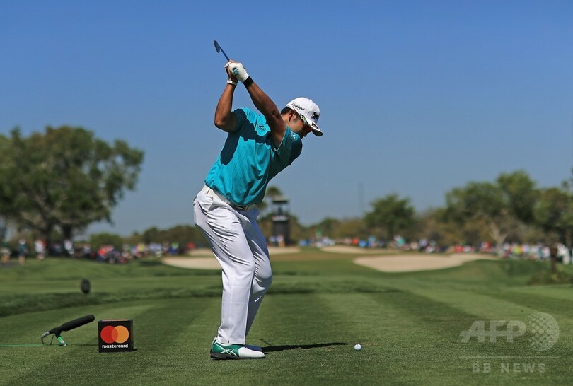 松山英樹(Hideki Matsuyama)はスコアを1ストローク伸ばしたものの、通算3アンダーで35位タイに後退している。(c)AFP