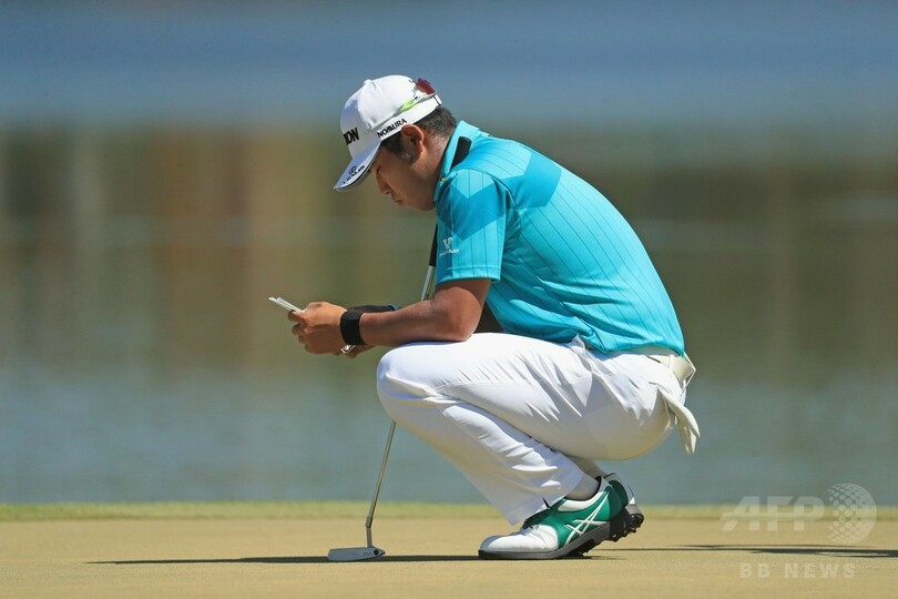 松山英樹(Hideki Matsuyama)はスコアを1ストローク伸ばしたものの、通算3アンダーで35位タイに後退している。(c)AFP
