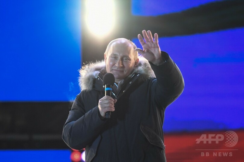 【3月19日 AFP】(更新、写真追加)ロシアで18日に投票が行われた大統領選挙は即日開票され、現職のウラジーミル・プーチン(Vladimir Putin)大統領が76%を超す得票率で再選した。中央選挙管理委員会が19日、発表した。通算4選となる。ただ反体制派は、票の水増しといった不正があったと指摘している。