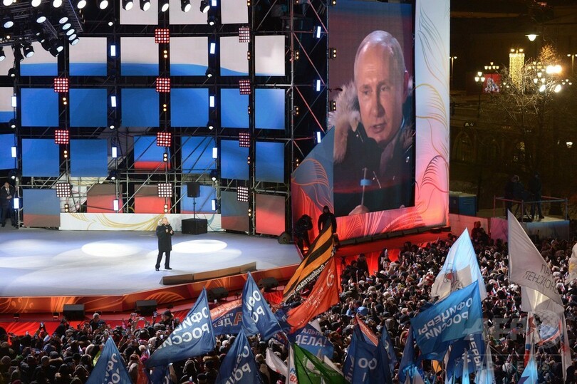 圧勝の見通しを受けてプーチン氏は、首都モスクワの大統領府(クレムリン、Kremlin)そばのマネージ広場(Manezh Square)に集まり歓声を上げる市民を前に、「国民の信頼と希望」が示されたと述べた。