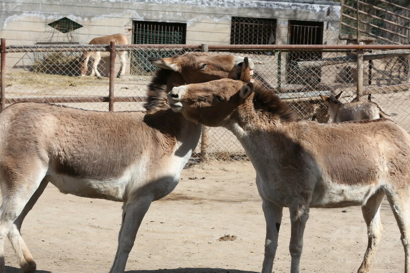 昼下がりのチベット高原野生動物園では、オオカミやクマ、ロバなどの「住民」ははしゃいだり、うとうとしたり。春の日差しを満喫していた。(c)CNS/JCM/AFPBB News