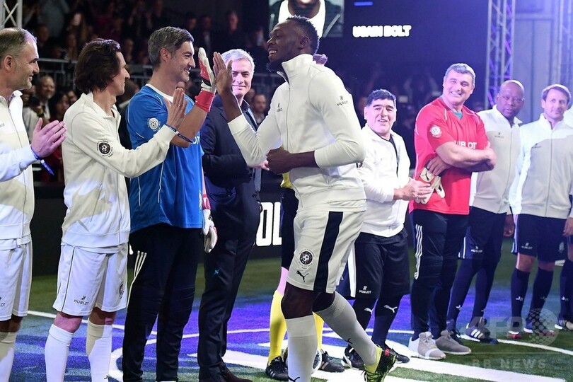 【3月22日 AFP】スイス・バーゼル(Basel)で21日、高級腕時計ブランド「ウブロ(HUBLOT)」が主催するサッカーのエキシビションマッチが行われ、元陸上男子短距離のウサイン・ボルト(Usain Bolt)氏が、サッカー元アルゼンチン代表のディエゴ・マラドーナ(Diego Maradona)氏らと対戦した。(c)AFP