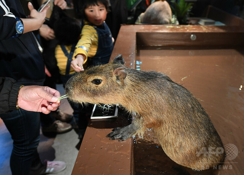 「イメージだけではない、動物の温かみを感じてほしい」と森隆之(Takayuki Mori)館長(45)。家族で訪れた東京都の会社員、大木正人さん(54)は、「(動物との)距離が近くていいね」。7歳の息子もカピバラに触れて「こわくなかった」と喜んでいた。(c)AFPBB News