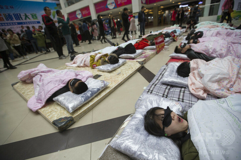 【3月26日 CNS】中国・山西省(Shanxi)太原市(Taiyuan)のデパートで18日、睡眠の「技術」を競う睡眠大会が行われた。