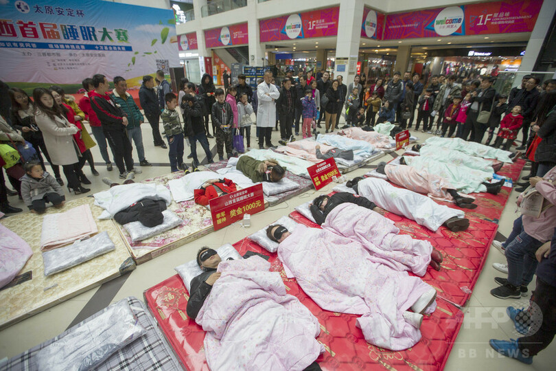 【3月26日 CNS】中国・山西省(Shanxi)太原市(Taiyuan)のデパートで18日、睡眠の「技術」を競う睡眠大会が行われた。