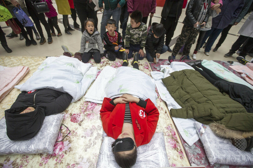 【3月26日 CNS】中国・山西省(Shanxi)太原市(Taiyuan)のデパートで18日、睡眠の「技術」を競う睡眠大会が行われた。