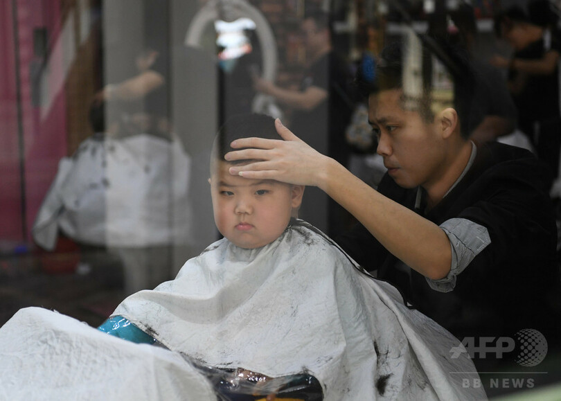 中国・吉林省(Jilin)長春市(Changchun)の散髪店では、多くの親たちが朝早くから子どもを連れて訪れた。理髪店の店主は、「客の流れは通常より10倍ほどある」と話す。(c)CNS/JCM/AFPBB News