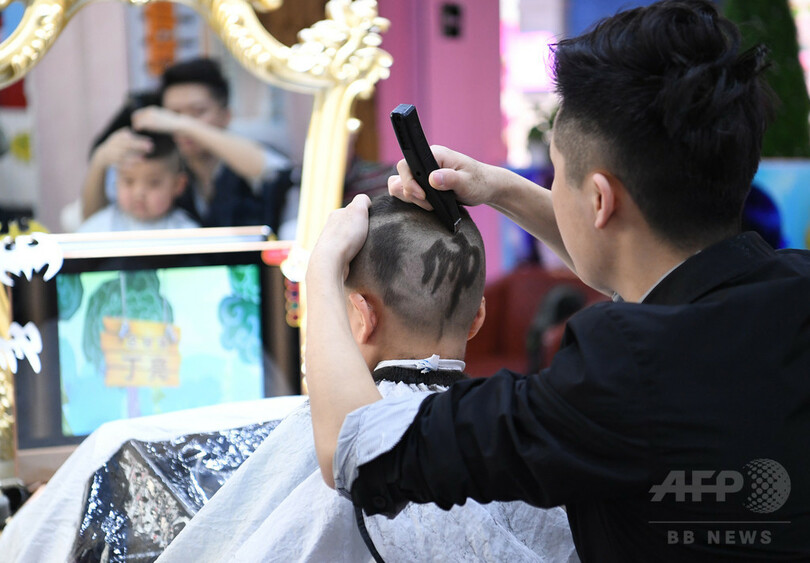 中国・吉林省(Jilin)長春市(Changchun)の散髪店では、多くの親たちが朝早くから子どもを連れて訪れた。理髪店の店主は、「客の流れは通常より10倍ほどある」と話す。(c)CNS/JCM/AFPBB News