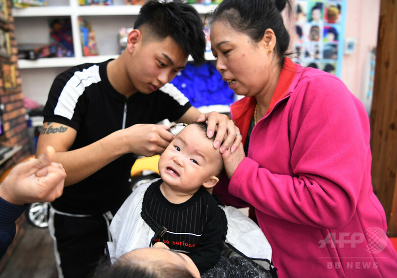 中国・吉林省(Jilin)長春市(Changchun)の散髪店では、多くの親たちが朝早くから子どもを連れて訪れた。理髪店の店主は、「客の流れは通常より10倍ほどある」と話す。(c)CNS/JCM/AFPBB News
