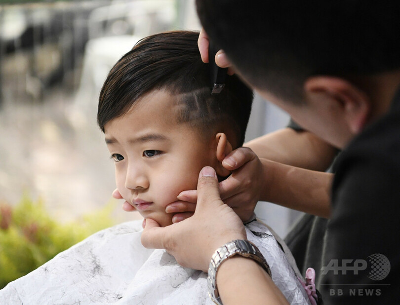 中国・吉林省(Jilin)長春市(Changchun)の散髪店では、多くの親たちが朝早くから子どもを連れて訪れた。理髪店の店主は、「客の流れは通常より10倍ほどある」と話す。(c)CNS/JCM/AFPBB News