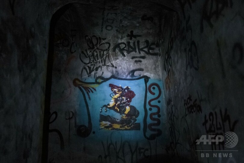 パリの地下墓地「カタコンブ」の壁に描かれたカタフィールらの芸術作品。(c)AFP / Geoffroy Van Der Hasselt