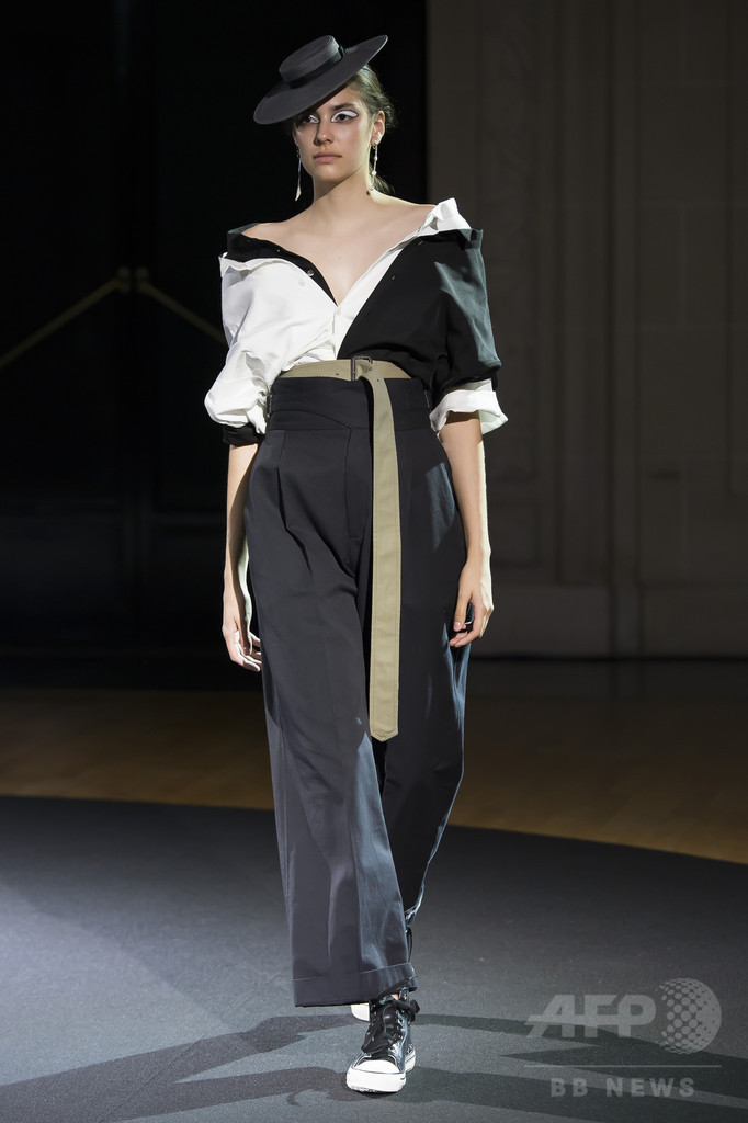 今回のポップアップショップでは、「MAKE LOVE」をテーマに、仏・パリで発表した2018年春夏コレクションを揃える。「相反する要素を組み合わせて新しいものを創り出す」というブランドコンセプトをもとに、“X(女性)とY(男性)の交わり”を表現した。交わりを表現するために逆開ファスナーが多用され、その逆開ファスナーを洋服の前後に付けることで、洋服同士を自由に組み合わせたり、洋服の半分を外にだしてもう半分を中に入れたり、洋服を互い違いに合体させるようなスタイリングを実現している。ファスナー同士が交わる様子はまさにアルファベットのXとYが交わっているように見えるという仕掛けだ。