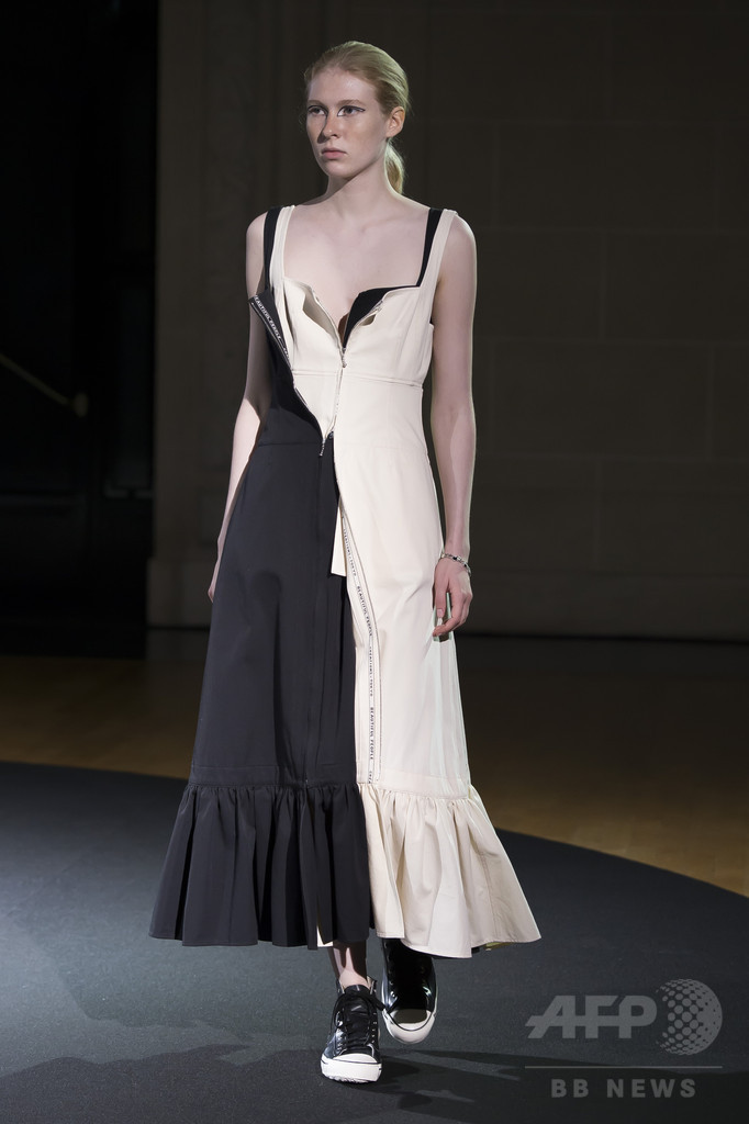 今回のポップアップショップでは、「MAKE LOVE」をテーマに、仏・パリで発表した2018年春夏コレクションを揃える。「相反する要素を組み合わせて新しいものを創り出す」というブランドコンセプトをもとに、“X(女性)とY(男性)の交わり”を表現した。交わりを表現するために逆開ファスナーが多用され、その逆開ファスナーを洋服の前後に付けることで、洋服同士を自由に組み合わせたり、洋服の半分を外にだしてもう半分を中に入れたり、洋服を互い違いに合体させるようなスタイリングを実現している。ファスナー同士が交わる様子はまさにアルファベットのXとYが交わっているように見えるという仕掛けだ。
