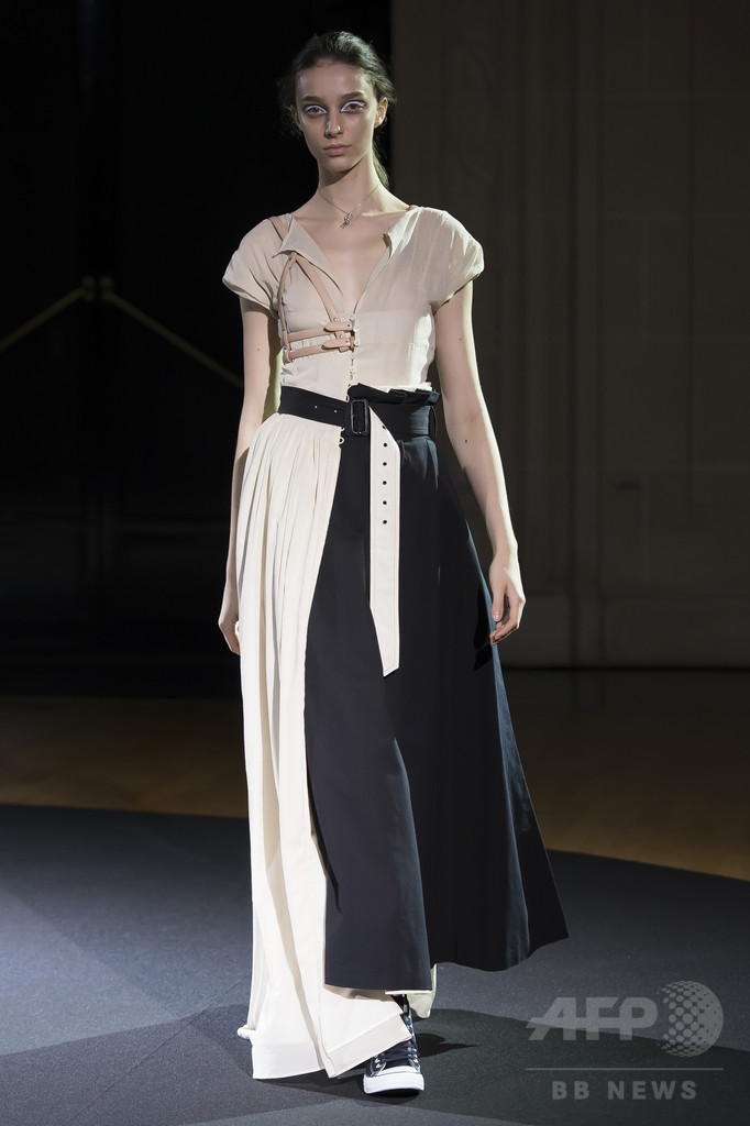 今回のポップアップショップでは、「MAKE LOVE」をテーマに、仏・パリで発表した2018年春夏コレクションを揃える。「相反する要素を組み合わせて新しいものを創り出す」というブランドコンセプトをもとに、“X(女性)とY(男性)の交わり”を表現した。交わりを表現するために逆開ファスナーが多用され、その逆開ファスナーを洋服の前後に付けることで、洋服同士を自由に組み合わせたり、洋服の半分を外にだしてもう半分を中に入れたり、洋服を互い違いに合体させるようなスタイリングを実現している。ファスナー同士が交わる様子はまさにアルファベットのXとYが交わっているように見えるという仕掛けだ。