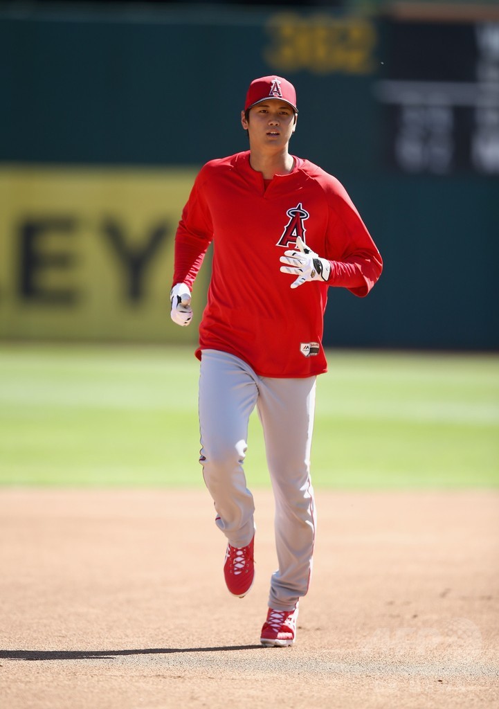 23歳の大谷は、4月1日のアスレチックス戦で先発登板する予定となっている。(c)AFP