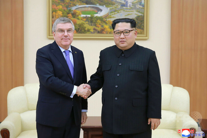 バッハ会長は北朝鮮が1月に出した招待に応じて29日から31日までの日程で北朝鮮を訪問した。KCNAによると、金氏はバッハ氏に対し、開会式で南北の選手が合同入場し、アイスホッケー女子で南北合同チームを結成した平昌冬季五輪は「北と南の調和の新たな一章を開いた」と述べた。