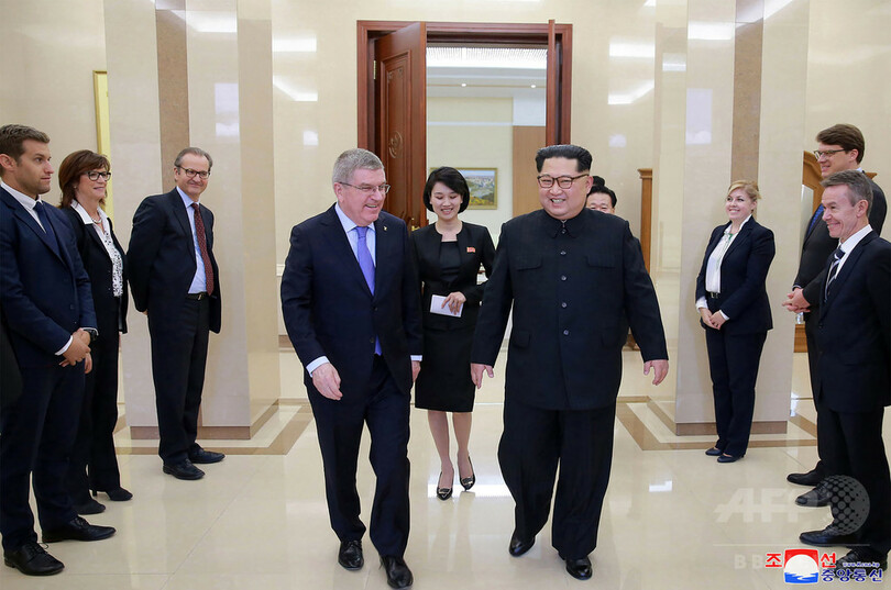 バッハ会長は北朝鮮が1月に出した招待に応じて29日から31日までの日程で北朝鮮を訪問した。KCNAによると、金氏はバッハ氏に対し、開会式で南北の選手が合同入場し、アイスホッケー女子で南北合同チームを結成した平昌冬季五輪は「北と南の調和の新たな一章を開いた」と述べた。