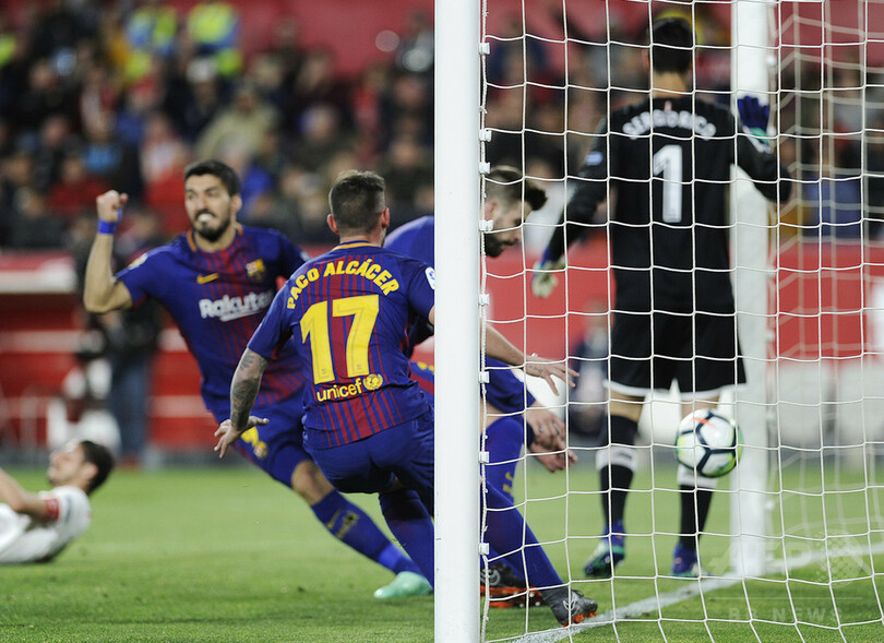 今季リーグ戦無敗で、昨季から13か月国内で負けていないバルセロナに対しセビージャは、フランコ・バスケス(Franco Vazquez)とルイス・ムリエル(Luis Muriel)のゴールで2点を先行し、思わぬ勝利が目の前に迫っていた。