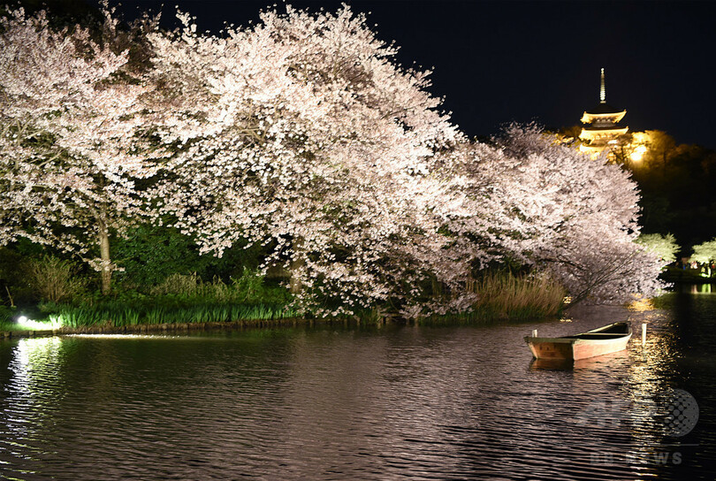 妖艶な夜桜、湖面にも 横浜で「観桜の夕べ」