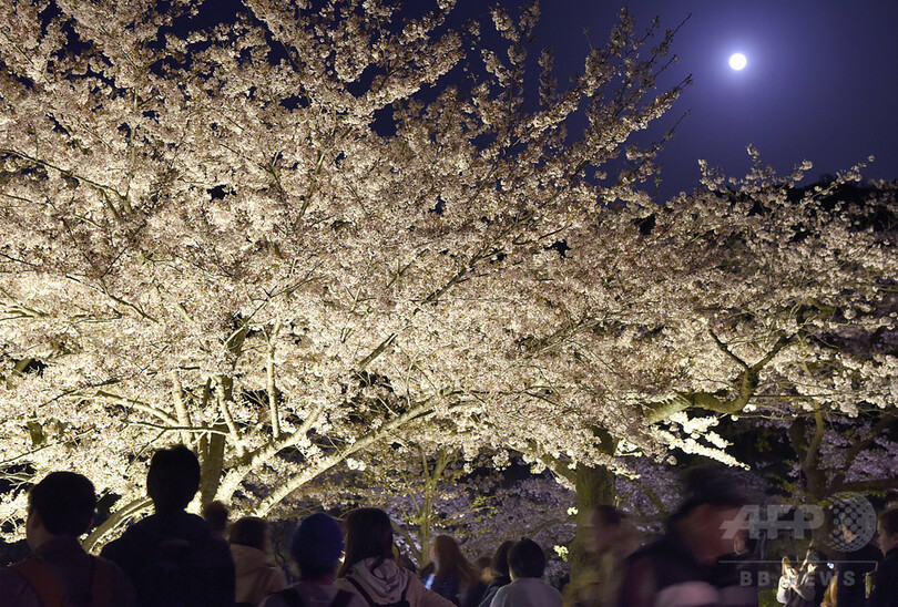 【4月1日 AFPBB News】横浜市中区の庭園「三渓園(Sankeien Garden)」では3月31日、見頃を迎えた桜がライトアップされ、見物客でにぎわいを見せている。