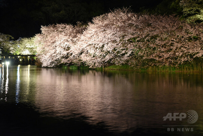 【4月1日 AFPBB News】横浜市中区の庭園「三渓園(Sankeien Garden)」では3月31日、見頃を迎えた桜がライトアップされ、見物客でにぎわいを見せている。