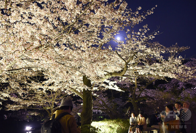 【4月1日 AFPBB News】横浜市中区の庭園「三渓園(Sankeien Garden)」では3月31日、見頃を迎えた桜がライトアップされ、見物客でにぎわいを見せている。