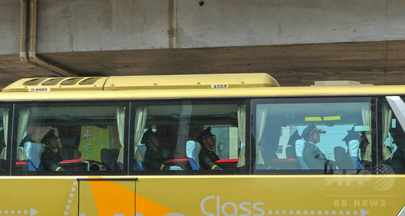 遺骨を乗せた一団の車がゆっくりと陵園内に入ってくると、車内の人民解放軍兵士が中国国旗をまとった烈士のひつぎを掲げた。市民は、菊の花を捧げて烈士を迎え、こうべを垂れて敬意を表した。(c)CNS/JCM/AFPBB News