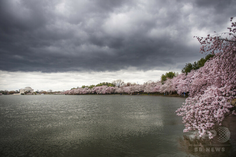 【4月5日 AFP】米首都ワシントン(Washington D.C.)で桜が見頃を迎えている。ポトマック川(Potomac River)に隣接する入江タイダルベイスン(Tidal Basin)では、ジェファーソン記念館(Jefferson Memorial)やワシントン記念塔(Washington Monument)を背景に満開の桜が広がっている。(c)AFP