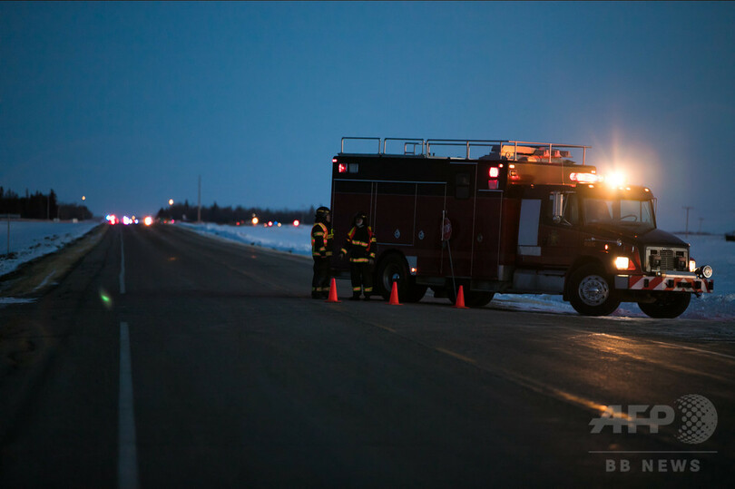警察当局によると、事故があったのは同州ティズデール(Tisdale)の北約28キロの幹線道路。カナダ連邦警察(Royal Canadian Mounted Police)のテッド・モンロー(Ted Monroe)氏は報道陣に対し、「重大な事故で、トレーラートラックとバスが衝突した」と述べたが、それ以上の詳細については明らかにしていない。(c)AFP