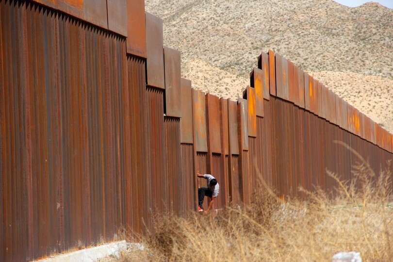 この若者の越境を手助けした男性は3人。2人は壁を登る若者を押し上げる役で、もう1人は見張り番だ。若者は友人の手を借りてさびついた金属製の壁をよじ登り、壁を越えてメキシコ側のシウダフアレス(Ciudad Juarez)から米国側のニューメキシコ州サンランドパーク(Sunland Park)に入った。わずか2分足らずの出来事だった。