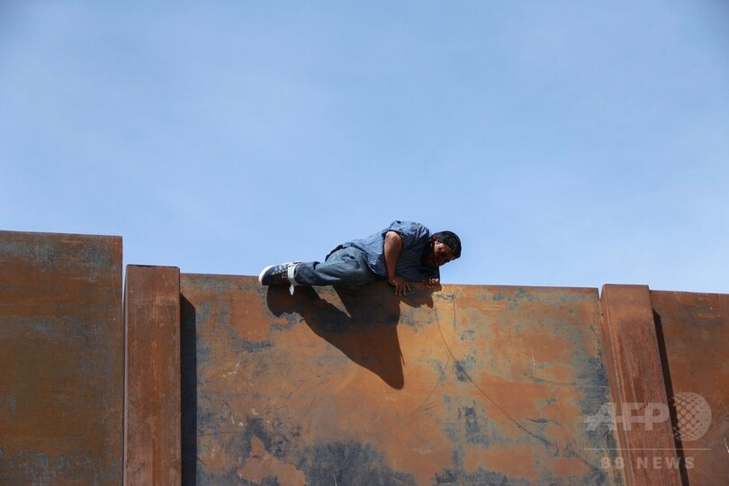 【4月8日 AFP】ドナルド・トランプ(Donald Trump)米大統領は不法入国者の取り締まり強化対策として米南部のメキシコ国境地帯に数千人規模で州兵を配備するよう指示した。だが、それも米国へ行きたいと強く願う1人の若者の決意を覆すことはなかった。このメキシコ人の若者は6日、仲間の助けを借りて米メキシコ間の壁をよじ登って越え、米国側に入ることに成功した。