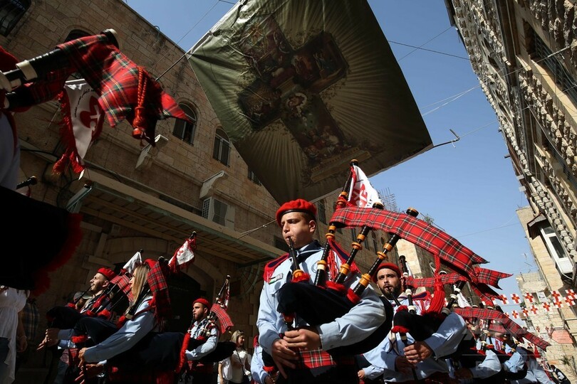 【4月8日 AFP】中東エルサレム(Jerusalem)の旧市街(Old City)で7日、キリスト教東方正教会の信者らが復活祭前夜の恒例行事「聖火の奇跡(Holy Fire)」の儀式に臨んだ。聖墳墓教会(Church of the Holy Sepulchre)にある空洞から「聖なる火」が出現するとされる儀式は、1100年にわたって受け継がれている。今年も聖墳墓教会で信者たちがろうそくで火を受け渡し合った。(c)AFP