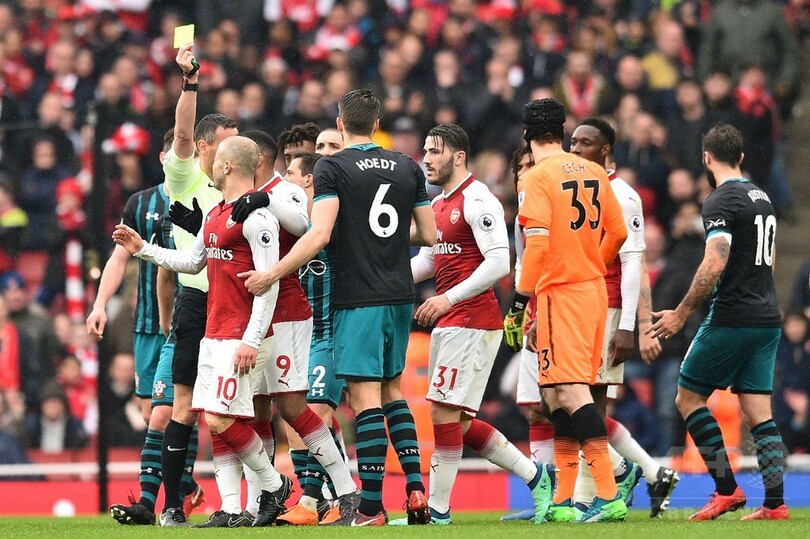 アーセナルは降格の危機にひんしているサウサンプトンの気持ちの入ったプレーに苦しめられながらもなんとか退けた。サウサンプトンはジャック・スティーブンス(Jack Stephens)がアーセナルのジャック・ウィルシャー(Jack Wilshere)と交錯して、一方のアーセナルはモハメド・エルネニー(Mohamed Elneny)がセドリック・ソアレス(Cedric Soares)の顔をはたいて退場となり、それぞれ10人で試合を終えている。